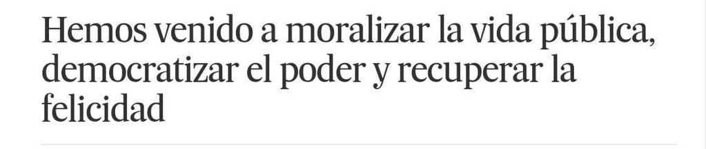 Yo me los imagino como unos Testigos de Jehová que vendrían puerta por puerta enseñando la nueva Constitución, el nuevo orden, la palabra de Podemos, o igual tendríamos que ir a conferencias, no me sé muy bien los caminos (inescrutables) que van a seguir para hacernos moralmente más adecuados. Tampoco sé cual es el tipo de moral que vamos a tener…hay tipos y no me dicen cuál me van a imponer. Y protestaban de la moral católica…